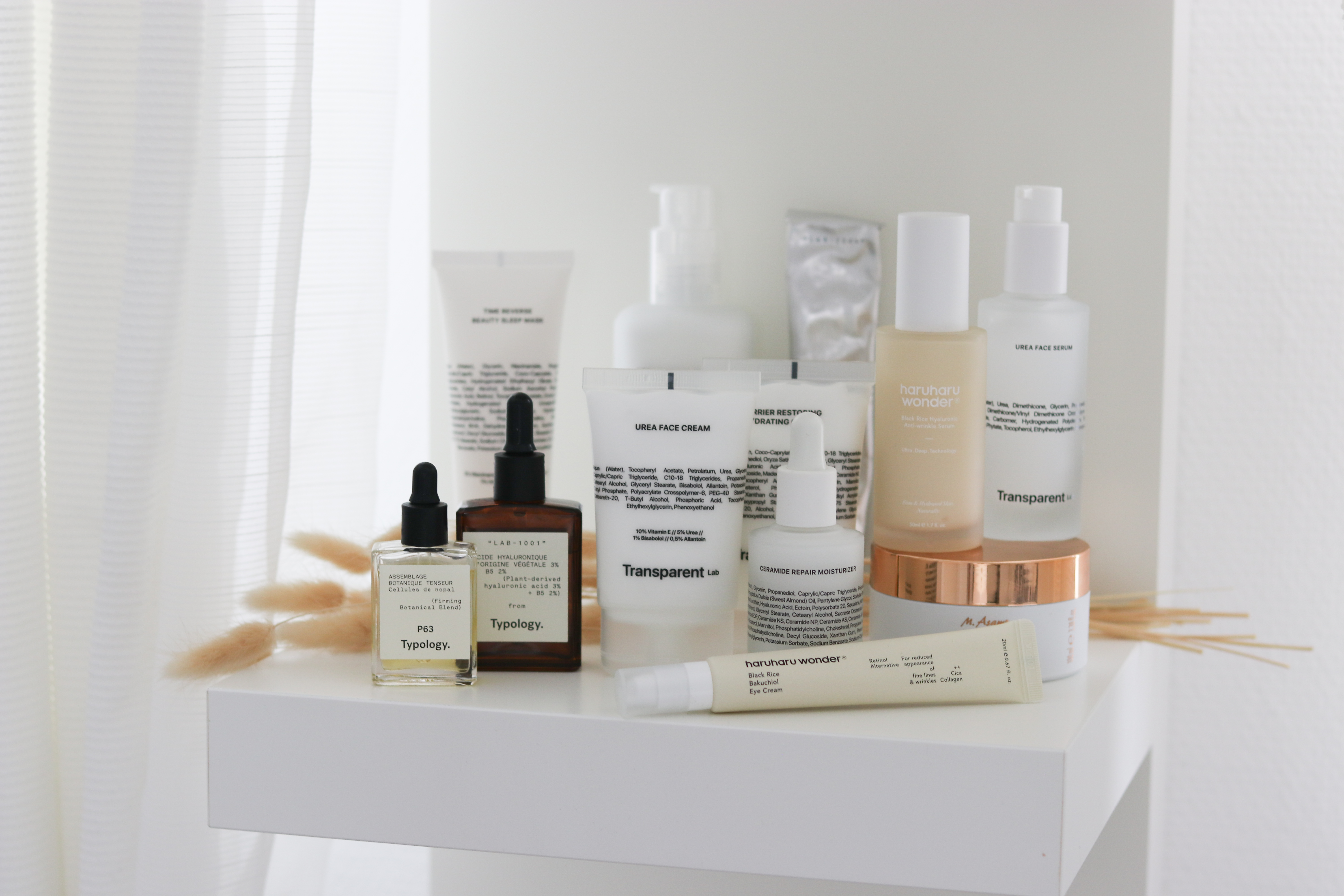 Das waren jetzt alle Produkte meiner derzeitigen Clean Girl Skincare Routine bei trockener zu Irritationen neigender Haut. Ein bunter Mix zwischen wahnsinnig toll, ganz okay und nicht pflegend genug. Was man generell sagen kann ist, dass ich ein großer Fan der Transparent Lab Produkte bin. Die Produkte habe ich vorher noch nie gesehen, noch nie davon gehört aber nach dem ich explizit nach sehr feuchtigkeitsspendenden Produkten gesucht habe, habe ich viel gutes über die Produkte gehört und wurde tatsächlich nicht enttäuscht. Die Produkte habe ich euch ja verlinkt, ich finde preislich gesehen ist es okay. Nicht günstig aber auch weitaus nicht so teuer wie so manch anderes. Würde sagen, es liegt im guten Mittelbereich und was ich definitiv sagen kann ist, dass die Produkte vollumfänglich alle ihren Preis wert sind. Zumindest die, die ich euch gezeigt habe. Andere Produkte der Brand habe ich noch nicht ausprobiert, kann dazu also nichts sagen. Typology habe ich halbwegs quer Beet schon durchprobiert und mochte viele Produkte wirklich auch sehr gern. Die Seren finde ich generell toll. Hatte auch schon mal ein Vitamin C Serum der Marke, das wirklich toll war (wenn auch etwas klebrig) und auch diverse Cremes und das getönte Serum. Durch die Bandweite eine tolle Marke. Wenn ich es jetzt aber mit Transparent Lab vergleichen müsste, würde die Brand definitiv gewinnen.